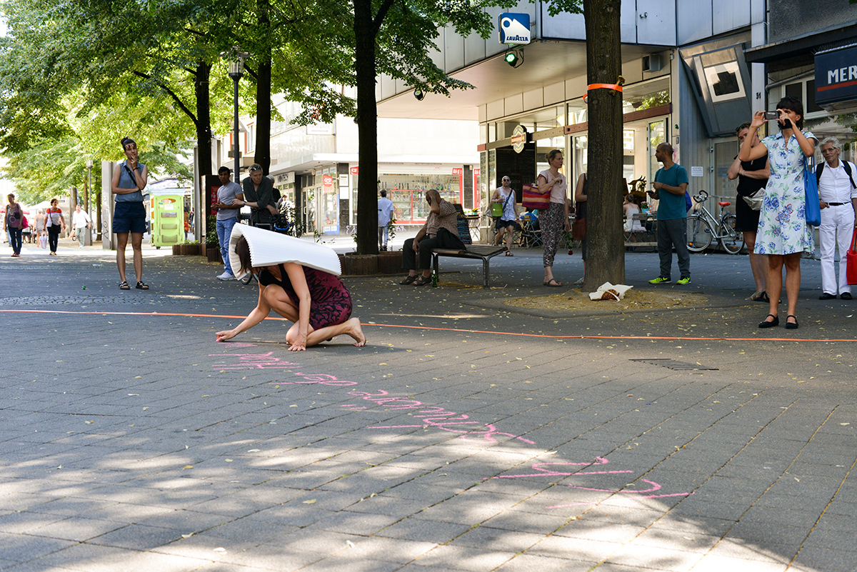 Interval °10 rückte mit performativen Erforschungen den öffentlichen Raum im Ruhrgebiet ins Sichtfeld. Mit Solo und Open Source Gruppen Performances wurde die facettenreiche Vielfalt durch prozessuale, politische und poetische Bildern erweitert.