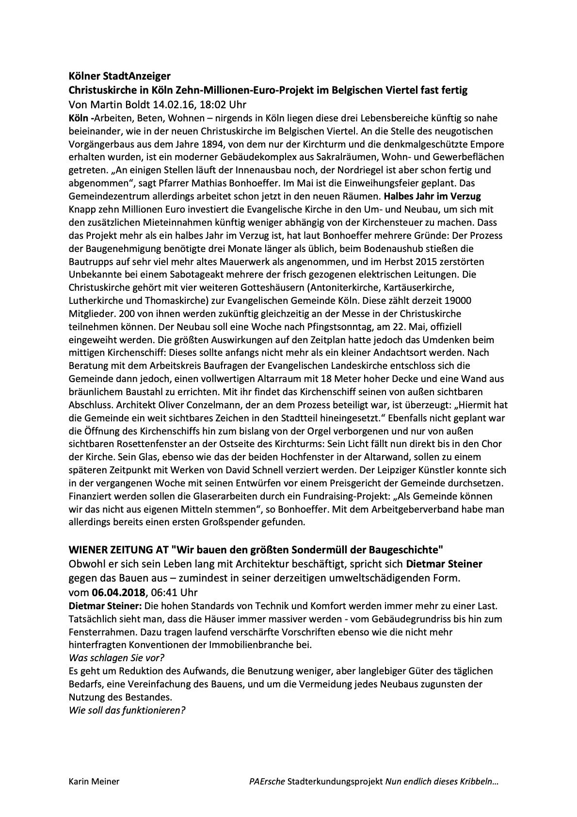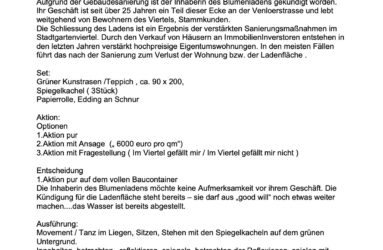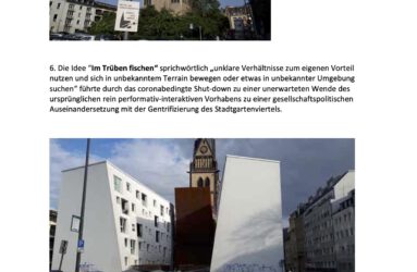 Was macht einen Ort lebenswert? Ist es die Gemeinschaft in der ich lebe? Ist es seine Topo- graphie? Sind es Frieden und Wohlstand, die Liebe zu einem Menschen, zur Familie? Sind es Gerüche oder bestimmte Klänge? Ist es überhaupt ein geographisch festgelegter Ort? Oder Ist vielleicht ist es ein Zustand, ein Gefühl? – Fragen die das Aktionslabor PAErsche mit einer Stadterkundung im Stadtgartenviertel performativ und partizipativ erkunden möchte.